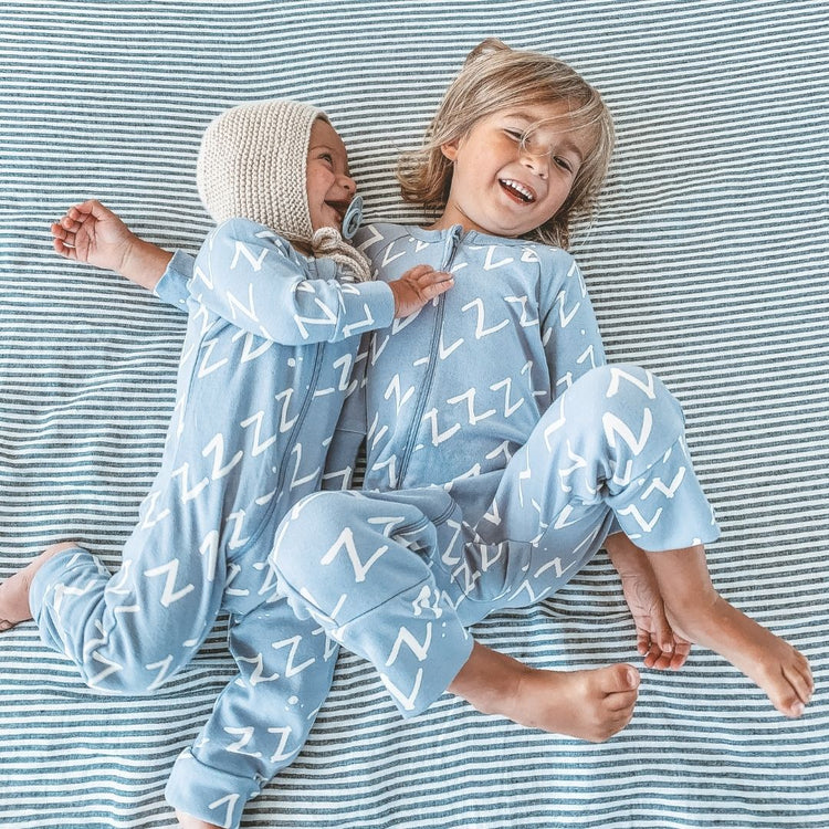 Our KipZips feature generous ankle room for easy on-off action and premium organic cotton printed with eco inks. They're thicker than your normal romper, so keep babe at just the right temperature for a good night's rest.