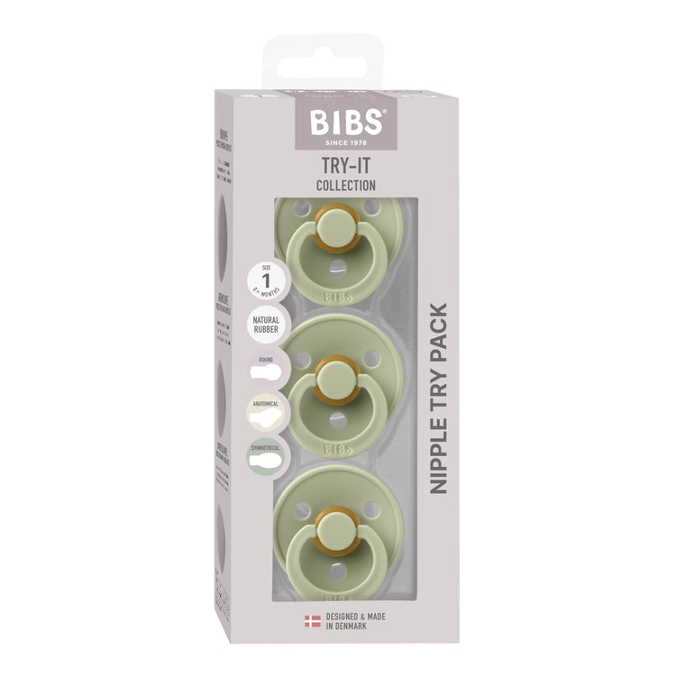 When it comes to finding the right dummy for your baby, there’s no such thing as a one-size-fits-all solution. With different facial features, sucking preferences, and oral development, some dummies will simply feel more comfortable than others. BIBS' Try-It Collection simplifies the discovery process, offering three different teat shapes to experiment with, all crafted from soft and flexible natural rubber latex materials.